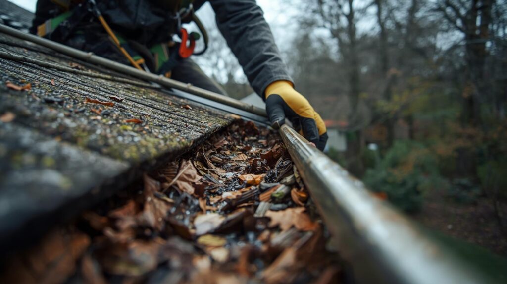 At least twice a year — once in late spring after everything has thawed out, and again in late fall after the leaves have come down. The tree coverage in this part of the mountains drops a lot of debris, and if you skip a season it piles up fast. Downspouts especially need to be checked both times, not just the gutters.