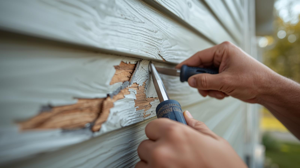 You can catch a lot from the ground. Walk the perimeter of your home and look for panels that have cracked, bowed, or shifted. Check corners and around windows for gaps where caulk has pulled away. Look for dark streaks or green patches that could be mold or moisture staining — those usually mean water has gotten behind the siding somewhere nearby. If you notice any of that, call Simon Says Roofing and we’ll come out for a proper inspection at no cost.