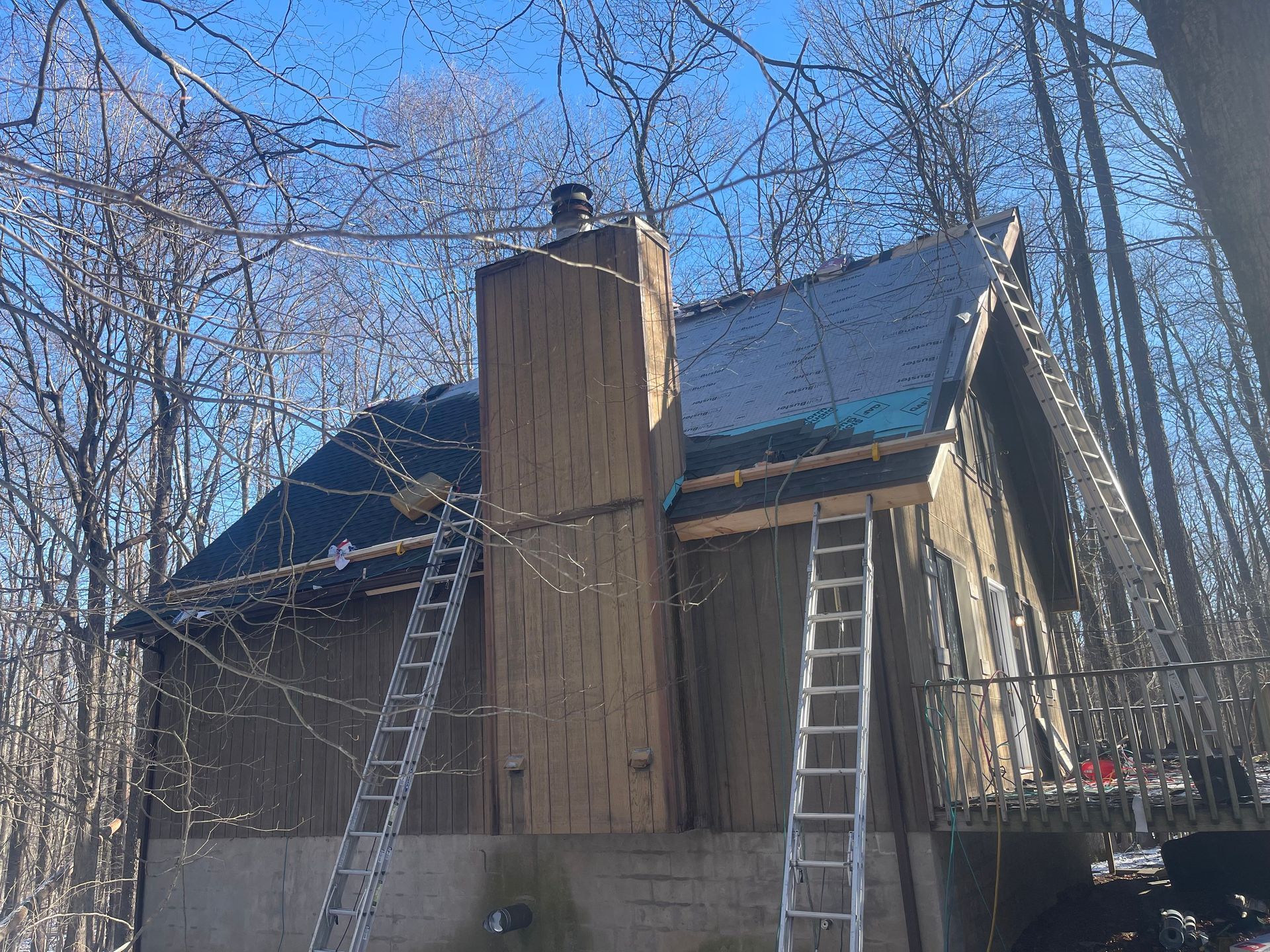 A roof that has felt buster written on it