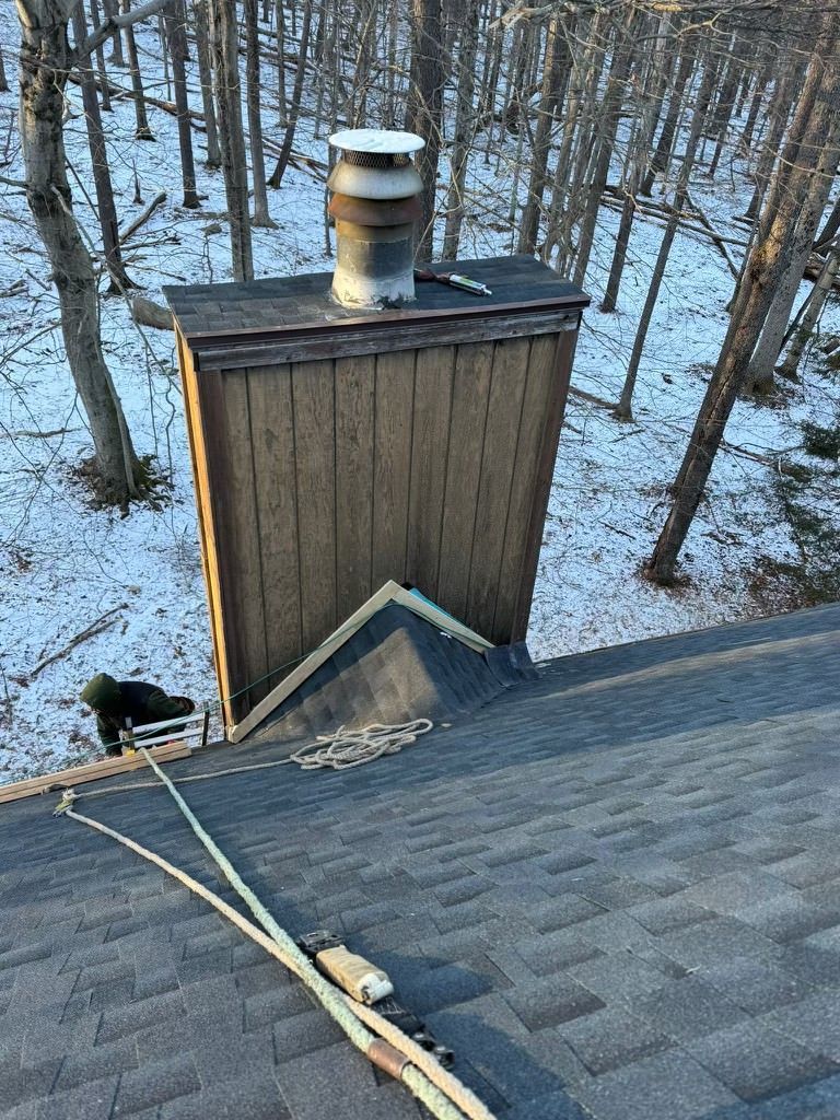 A chimney is sitting on top of a roof.